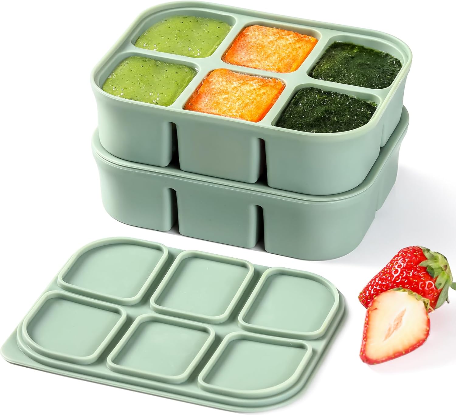 - -Ice Cube Tray with Lid- Ice tray completely sealed, so you can make fresh baby food or ice without worrying about the smell of the refrigerator permeating the Silicone ice trays as they are tightly sealed. Holds the inside and outside of the container tightly together to prevent the ingredients from mixing.